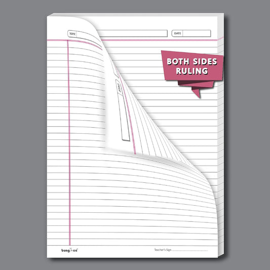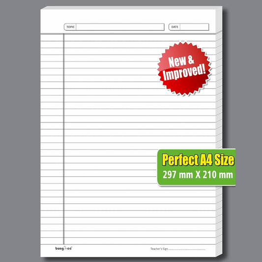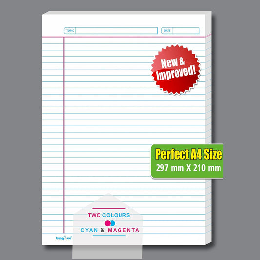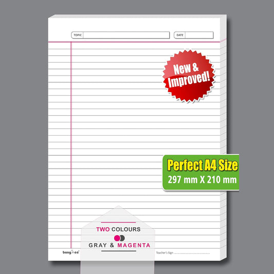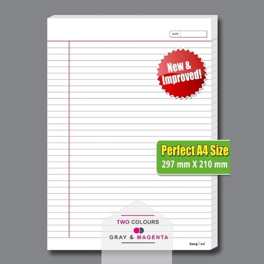 Bungbee A4 Size Ruled Sheets 90 GSM, White, Both Side Ruled, No Punch, With Margin | Grey colour Rule and Magenta Margin | Magna Edition | For Assignment, Project Work, Exam and For Office Use